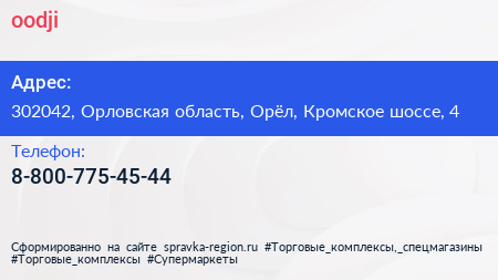 oodji по адресу 302042, Орловская область, Орёл, Кромское шоссе, 4 в дальнейшем Организация, размещена в следующих категориях: