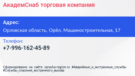 АкадемСнаб, торговая компания по адресу Орловская область, Орёл, Машиностроительная, 17 в дальнейшем Организация, размещена в следующих категориях: