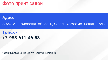 Фото-принт, салон по адресу 302016, Орловская область, Орёл, Комсомольская, 176Б в дальнейшем Организация, размещена в следующих категориях: