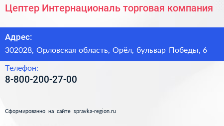 Цептер Интернациональ, торговая компания по адресу 302028, Орловская область, Орёл, бульвар Победы, 6 в дальнейшем Организация, размещена в следующих категориях: