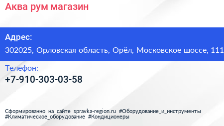 Аква рум, магазин по адресу 302025, Орловская область, Орёл, Московское шоссе, 111 в дальнейшем Организация, размещена в следующих категориях: