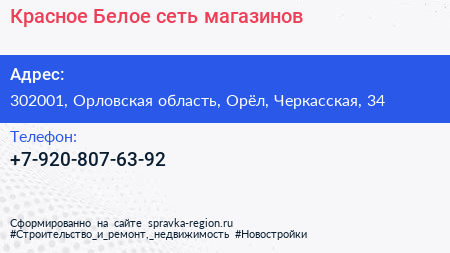 Красное & Белое, сеть магазинов по адресу 302001, Орловская область, Орёл, Черкасская, 34 в дальнейшем Организация, размещена в следующих категориях: