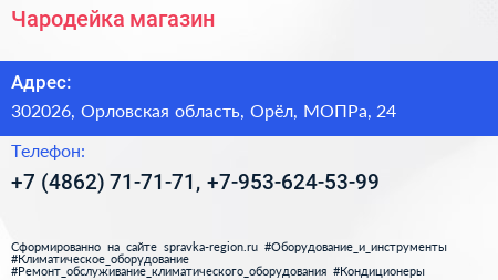 Чародейка, магазин по адресу 302026, Орловская область, Орёл, МОПРа, 24 в дальнейшем Организация, размещена в следующих категориях: