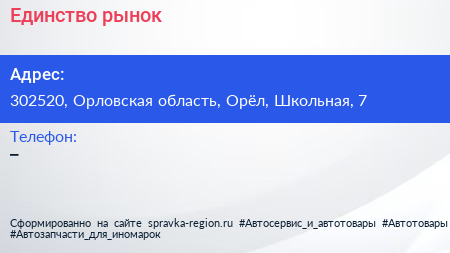 Единство, рынок по адресу 302520, Орловская область, Орёл, Школьная, 7 в дальнейшем Организация, размещена в следующих категориях: