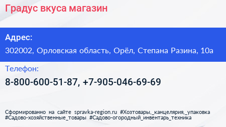 Градус вкуса, магазин по адресу 302002, Орловская область, Орёл, Степана Разина, 10а в дальнейшем Организация, размещена в следующих категориях:
