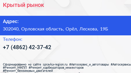 Крытый рынок по адресу 302040, Орловская область, Орёл, Лескова, 19Б в дальнейшем Организация, размещена в следующих категориях: