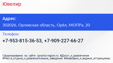 Ювелир по адресу 302026, Орловская область, Орёл, МОПРа, 20 в дальнейшем Организация, размещена в следующих категориях: