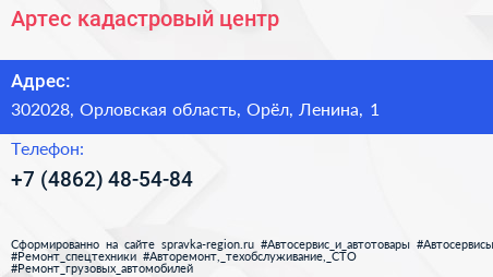 Артес, кадастровый центр по адресу 302028, Орловская область, Орёл, Ленина, 1 в дальнейшем Организация, размещена в следующих категориях: