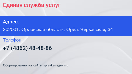 Единая служба услуг по адресу 302001, Орловская область, Орёл, Черкасская, 34 в дальнейшем Организация, размещена в следующих категориях: