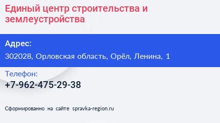 Единый центр строительства и землеустройства по адресу 302028, Орловская область, Орёл, Ленина, 1 в дальнейшем Организация, размещена в следующих категориях: