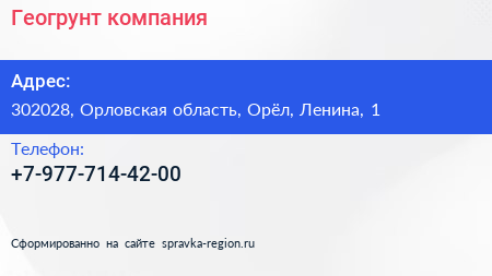 Геогрунт, компания по адресу 302028, Орловская область, Орёл, Ленина, 1 в дальнейшем Организация, размещена в следующих категориях: