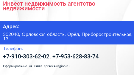 Инвест-недвижимость, агентство недвижимости по адресу 302040, Орловская область, Орёл, Приборостроительная, 13 в дальнейшем Организация, размещена в следующих категориях: