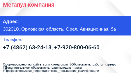 Мегапул, компания по адресу 302010, Орловская область, Орёл, Авиационная, 5а в дальнейшем Организация, размещена в следующих категориях: