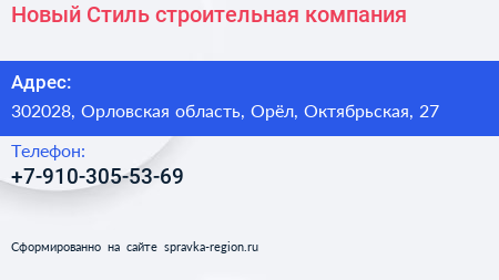 Новый Стиль, строительная компания по адресу 302028, Орловская область, Орёл, Октябрьская, 27 в дальнейшем Организация, размещена в следующих категориях: