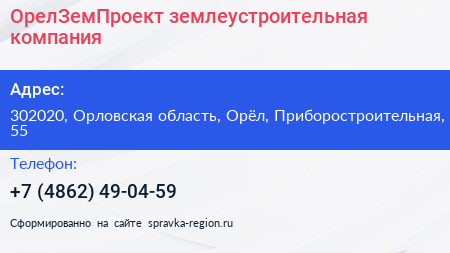 ОрелЗемПроект, землеустроительная компания по адресу 302020, Орловская область, Орёл, Приборостроительная, 55 в дальнейшем Организация, размещена в следующих категориях: