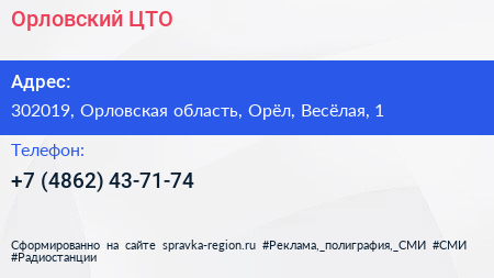 Орловский ЦТО по адресу 302019, Орловская область, Орёл, Весёлая, 1 в дальнейшем Организация, размещена в следующих категориях: