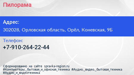 Пилорама по адресу 302028, Орловская область, Орёл, Коневская, 9Б в дальнейшем Организация, размещена в следующих категориях: