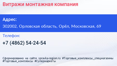 Витражи, монтажная компания по адресу 302002, Орловская область, Орёл, Московская, 69 в дальнейшем Организация, размещена в следующих категориях:
