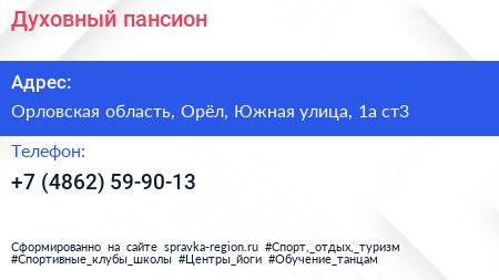 Духовный пансион по адресу Орловская область, Орёл, Южная улица, 1а ст3 в дальнейшем Организация, размещена в следующих категориях: