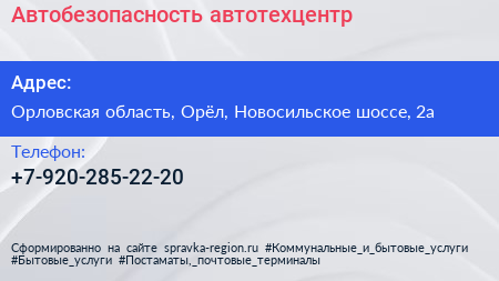 Автобезопасность, автотехцентр по адресу Орловская область, Орёл, Новосильское шоссе, 2а в дальнейшем Организация, размещена в следующих категориях: