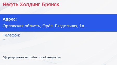 Нефть Холдинг Брянск по адресу Орловская область, Орёл, Раздольная, 1д в дальнейшем Организация, размещена в следующих категориях: