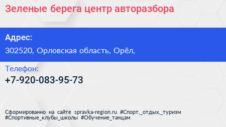 Зеленые берега, центр авторазбора по адресу 302520, Орловская область, Орёл, в дальнейшем Организация, размещена в следующих категориях: