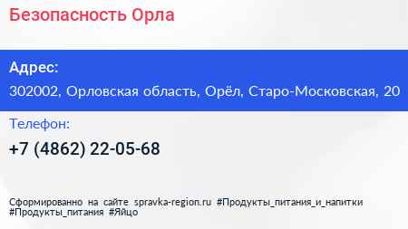 Безопасность Орла по адресу 302002, Орловская область, Орёл, Старо-Московская, 20 в дальнейшем Организация, размещена в следующих категориях: