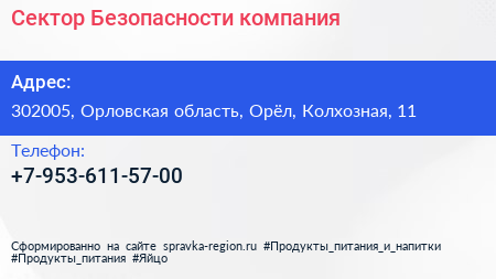 Сектор Безопасности, компания по адресу 302005, Орловская область, Орёл, Колхозная, 11 в дальнейшем Организация, размещена в следующих категориях: