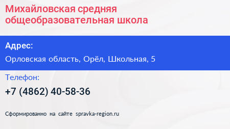 Михайловская средняя общеобразовательная школа по адресу Орловская область, Орёл, Школьная, 5 в дальнейшем Организация, размещена в следующих категориях:
