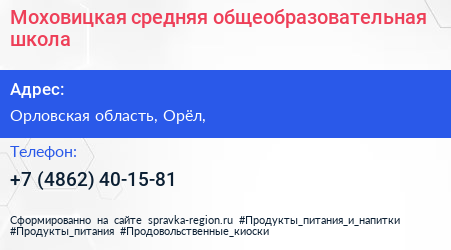 Моховицкая средняя общеобразовательная школа по адресу Орловская область, Орёл, в дальнейшем Организация, размещена в следующих категориях: