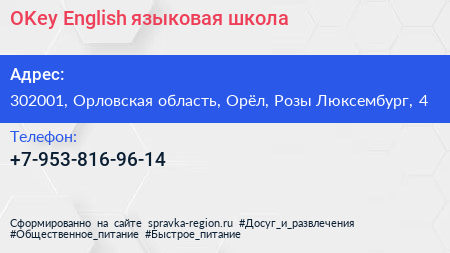 OKey English, языковая школа по адресу 302001, Орловская область, Орёл, Розы Люксембург, 4 в дальнейшем Организация, размещена в следующих категориях: