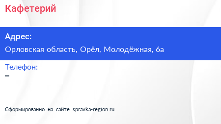 Кафетерий по адресу Орловская область, Орёл, Молодёжная, 6а в дальнейшем Организация, размещена в следующих категориях: