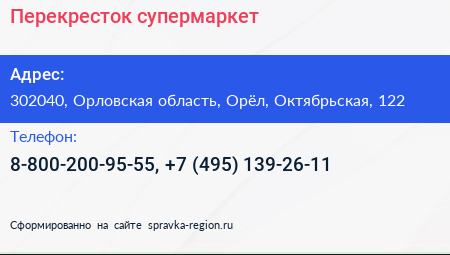 Перекресток, супермаркет по адресу 302040, Орловская область, Орёл, Октябрьская, 122 в дальнейшем Организация, размещена в следующих категориях: