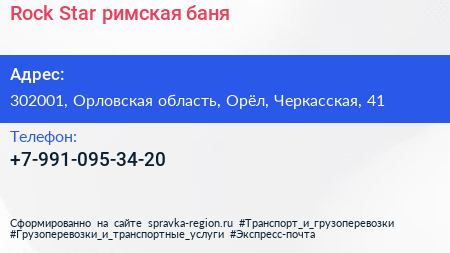 Rock Star, римская баня по адресу 302001, Орловская область, Орёл, Черкасская, 41 в дальнейшем Организация, размещена в следующих категориях:
