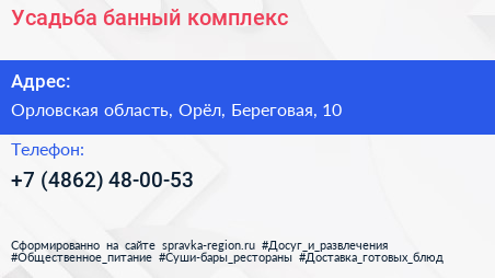 Усадьба, банный комплекс по адресу Орловская область, Орёл, Береговая, 10 в дальнейшем Организация, размещена в следующих категориях:
