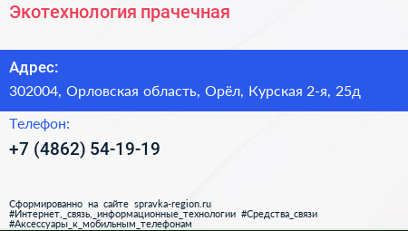 Экотехнология, прачечная по адресу 302004, Орловская область, Орёл, Курская 2-я, 25д в дальнейшем Организация, размещена в следующих категориях: