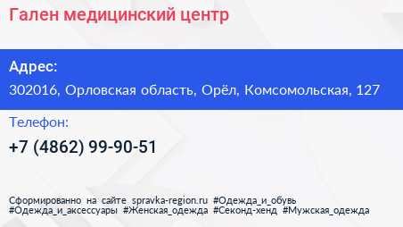 Гален, медицинский центр по адресу 302016, Орловская область, Орёл, Комсомольская, 127 в дальнейшем Организация, размещена в следующих категориях:
