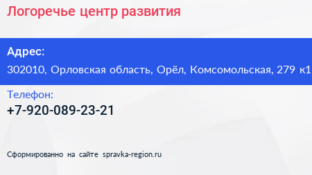 Логоречье, центр развития по адресу 302010, Орловская область, Орёл, Комсомольская, 279 к1 в дальнейшем Организация, размещена в следующих категориях: