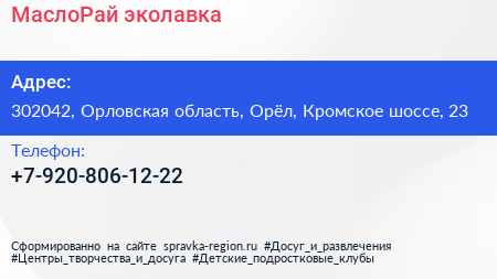 МаслоРай, эколавка по адресу 302042, Орловская область, Орёл, Кромское шоссе, 23 в дальнейшем Организация, размещена в следующих категориях: