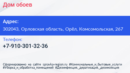 Дом обоев по адресу 302043, Орловская область, Орёл, Комсомольская, 267 в дальнейшем Организация, размещена в следующих категориях: