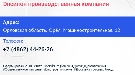 Эпсилон, производственная компания по адресу Орловская область, Орёл, Машиностроительная, 12 в дальнейшем Организация, размещена в следующих категориях: