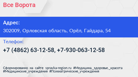 Все Ворота по адресу 302009, Орловская область, Орёл, Гайдара, 54 в дальнейшем Организация, размещена в следующих категориях: