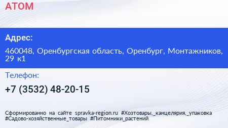 АТОМ по адресу 460048, Оренбургская область, Оренбург, Монтажников, 29 к1 в дальнейшем Организация, размещена в следующих категориях:
