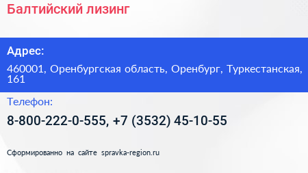 Балтийский лизинг по адресу 460001, Оренбургская область, Оренбург, Туркестанская, 161 в дальнейшем Организация, размещена в следующих категориях: