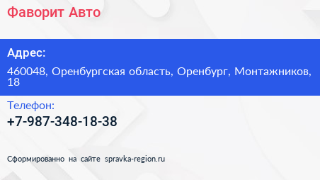 Фаворит Авто по адресу 460048, Оренбургская область, Оренбург, Монтажников, 18 в дальнейшем Организация, размещена в следующих категориях: