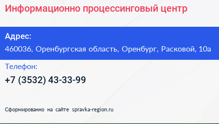 Информационно-процессинговый центр по адресу 460036, Оренбургская область, Оренбург, Расковой, 10а в дальнейшем Организация, размещена в следующих категориях: