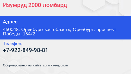 Изумруд-2000, ломбард по адресу 460048, Оренбургская область, Оренбург, проспект Победы, 154/2 в дальнейшем Организация, размещена в следующих категориях: