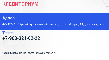 КРЕДИТОРИУМ по адресу 460026, Оренбургская область, Оренбург, Одесская, 75 в дальнейшем Организация, размещена в следующих категориях: