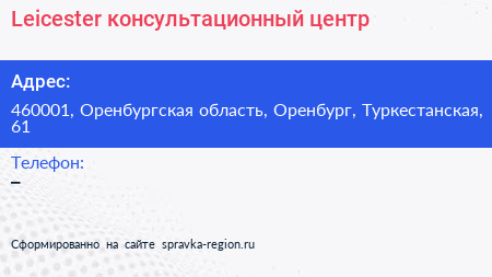 Leicester, консультационный центр по адресу 460001, Оренбургская область, Оренбург, Туркестанская, 61 в дальнейшем Организация, размещена в следующих категориях: