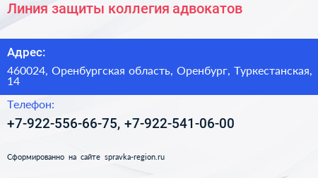 Линия защиты, коллегия адвокатов по адресу 460024, Оренбургская область, Оренбург, Туркестанская, 14 в дальнейшем Организация, размещена в следующих категориях: